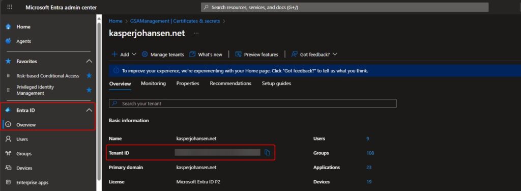 The $TenantID variable must contain the Tenant ID of your Entra ID. You can find the tenant ID here: