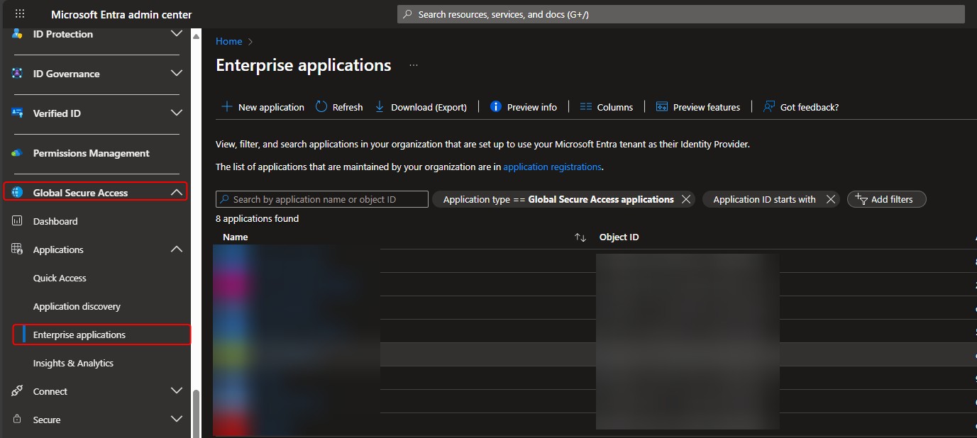 Global Secure Access must be initialized and configured, and you must have at lease one active connector group before going any further.